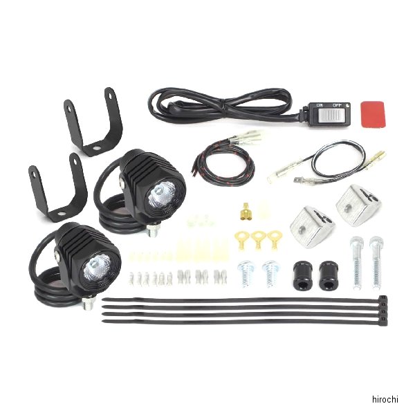 SP武川 LEDフォグランプキット3.0 950 2個入ヤマハ XSR125(BVF1)ヤマハ XSR155(BBSA)アルミ削り出しカラー類を使用し、純正ヘッドライトステーに装着するLEDフォグランプキットです。補助ランプとしてLEDフォグランプを装着することで、走行時の視認性が向上し、夜間走行の安全性を高めます。又、高輝度により、夜間での車両の存在感を高め、他のライダーや車からの認識がしやすくなり、事故防止対策としても貢献します。LEDフォグランプキットはXSR125・XSR155専用製品につき、簡単な配線加工で取付け出来ます。■LEDフォグランプキット3.0(950)LEDチップは非常に高輝度ながら低消費電力(約6.5W)を実現し、発電量があまり大きくない車両であってもお使い易い仕様としました。■インジケーターランプ付きON/OFFスイッチ付属インジケーターランプを内蔵することで、目視でランプ点灯のON/OFFを確認することが可能なります。
