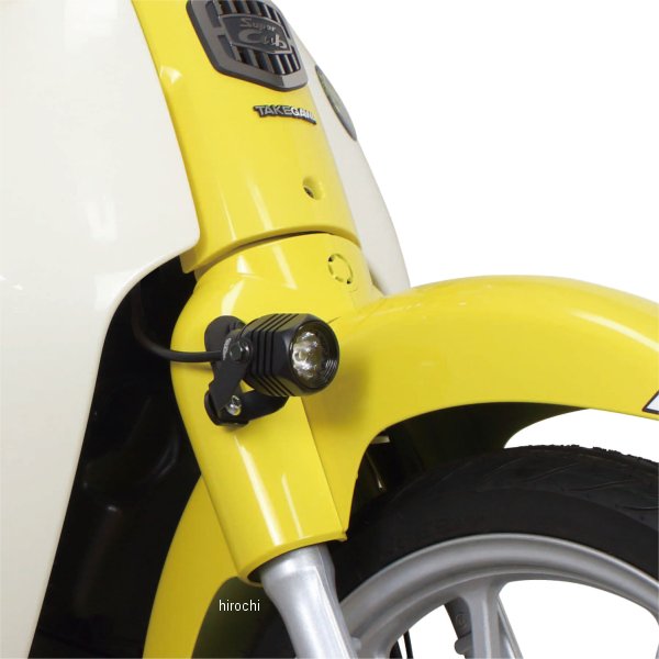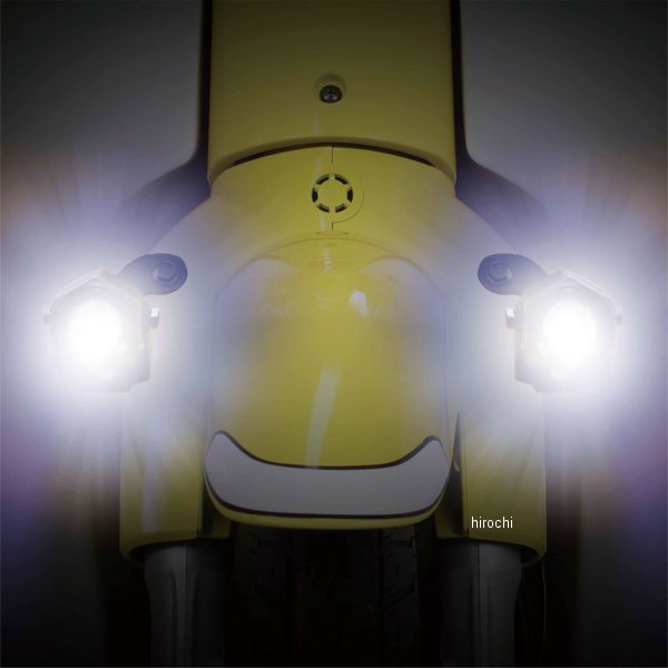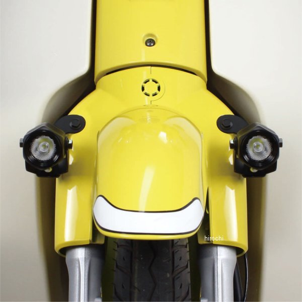 SP武川 LEDフォグランプキット3.0(950) 2個ホンダ スーパーカブ50(AA09)ホンダ スーパーカブ110(JA44/JA59)低消費電力:約6.5Wインジケーターランプ付きON/OFFスイッチ付属入数:2個【仕様説明】付属のステーを使用し、フロントフォークカバーに装着するLEDフォグランプキットです。補助ランプとしてLEDフォグランプを装着することで、走行時の視認性が向上し、夜間走行の安全性を高めます。又、高輝度により、夜間での車両の存在感を高め、他のライダーや車からの認識がしやすくなり、事故防止対策としても貢献します。LEDフォグランプキットは車両専用製品につき、簡単な配線加工で取付け出来ます。※簡単なギボシ圧着加工が必要となります。キット付属の純正フロントキャリア用カラーやネジ類を使用することで、純正フロントキャリアとLEDフォグランプの同時装着が可になります。SP武川製LEDフォグランプキットは、キャリアの積載位置より、低い位置に装着する様に設計されている為、かごの取付けや荷物の積載に干渉などの影響を与えません。LEDチップは非常に高輝度ながら低消費電力(約6.5W)を実現し、発電量があまり大きくない車両であってもお使い易い仕様としました。インジケーターランプを内蔵することで、目視でランプ点灯のON/OFFを確認することが可能なります。