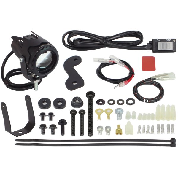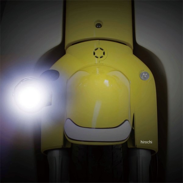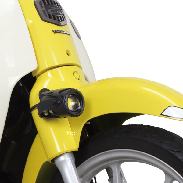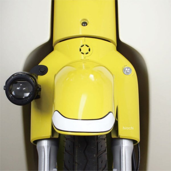 SP武川 LEDフォグランプキット カットライン 10W 1個ホンダ スーパーカブ50(AA09)ホンダ スーパーカブ110(JA44/JA59)ステー素材:スチール製ブラック塗装DC12V車両用電源コード長:約600mmインジケーターランプ付きON/OFFスイッチ付属固定位置が異なる2種類の汎用ステーが付属入数:1個本製品を車両に装着することで、濃い霧や激しい雨の時に、ヘッドライトでは照らせない部分を補い、走行時の視認性向上及び夜間走行時の安全性を高めることが出来ます。又、カットラインをフォグランプに採用している為、対向車や周囲の歩行者などに対し、眩しさに配慮した運転が行えます。高輝度LEDフォグランプの採用により、夜間での車両の存在感を高め、他のライダーや車からの認識がしやすくなり、事故防止対策としても貢献します。本製品は車両のカウル加工や配線加工の必要が無く、キットの構成部品により、フォグランプを簡単に取付け出来ます。※ギボシの取り付け加工が必要です。キット付属の純正フロントキャリア用カラーやネジ類を使用することで、純正フロントキャリアとLEDフォグランプの同時装着が可になります。SP武川製LEDフォグランプキットは、キャリアの積載位置より、低い位置に装着する様に設計されている為、かごの取付けや荷物の積載に干渉などの影響を与えません。
