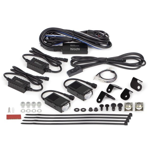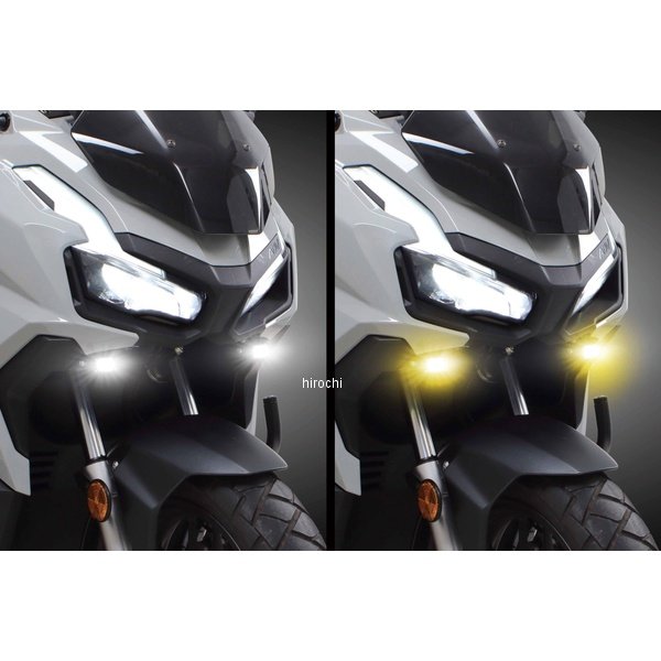 SP武川 LEDスモールフォグランプキット カットライン/10W/ホワイト・イエロー切替 2個入 ホンダ ADV160ホンダ ADV160(KF54-1000001~)ノーマルヘッドライトの補助ランプとしてご使用頂く事で、走行時の視認性が向上し、夜間走行の安全性を高めます。又、カットラインをフォグランプに採用することで、対向車や周囲の歩行者などに対し、眩しさに配慮した運転が行えます。更にLEDフォグランプ本体を小型化したコンパクトボディーを採用することで、フォグランプの存在感を抑えます。本体内部には、防水クーリングファンが内蔵している為、停車時や無風状態でも効率的にフォグランプ本体を冷却します。本製品には、ホワイト・イエロー切替え機能を搭載している為、付属のインジケーターランプ付き ON/OFFプッシュスイッチを使用することで、発光色の切替えが可能になります。発光色イエローは雨や霧に対し、低い反射率になる為、気候の変化に対応するフォグランプとしてご使用いただけます。使用例:Hi側を通常光軸 ホワイト に設定し、Lo側を イエロー として使用します。高輝度LEDフォグランプの採用により、夜間での車両の存在感を高め、他のライダーや車からの認識がしやすくなり、事故防止対策としても貢献します。本製品は車両のカウル加工の必要が無く、キットの構成部品により、フォグランプを簡単に取付けできます。※ギボシの取り付け加工が必要です。インジケーターランプ付き ON/OFFプッシュスイッチ(キット付属品)本製品をLEDフォグランプと同時装着することで、発光色の切り替え、ワンタッチON/OFF、フラッシュ機能の使用が可能になります。フラッシュ機能とはLEDフォグランプを点滅させることができます。※フラッシュ機能はイベントなどのクローズドエリアでの使用を目的とした機能です。一般公道使用禁止。スイッチ本体にはインジケーターランプを内蔵。又、小型で軽量な樹脂スイッチの為、両面テープでいろいろな位置に貼り付けできます。・ウェルカムライト配線を装備。ウェルカムライトとは、キーON時にフォグランプを点滅させます。・15Aヒューズを装備・消費電力は120Wまで※商品画像はイメージです。実際の商品と色や形状が異なる場合がございますのでご注意ください