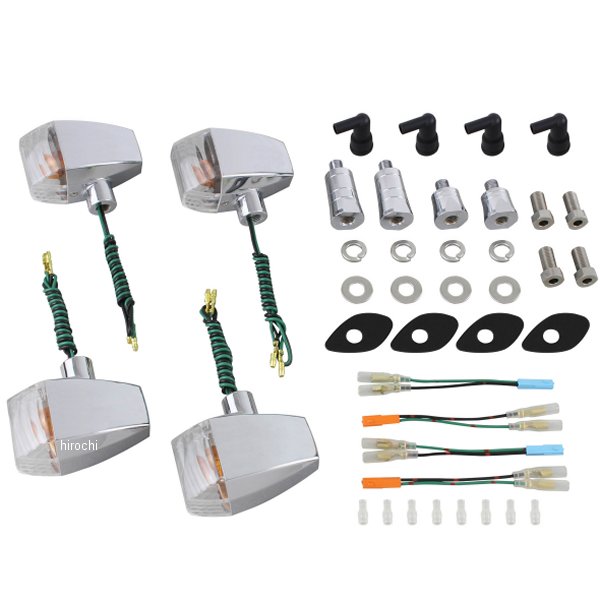 ポッシュ POSH ウインカーキット ZRタイプ05年-09年 ホンダ CB1300スーパーボルドール05年-07年 ホンダ CB400スーパーボルドールカラー:メッキボディ/クリアレンズレンズタイプ:クリスタルカットウインカー本体素材:樹脂製レンズ素材:ポリカーボネート付属電球:フロント(S球)12V23W、リア(S球)12V23W【セット内容】・ウインカー本体S球×4個・延長ステー20mmx2本・延長ステー40mmx2本・M10X20六角ボルトx4本・M10ワッシャー/Sワッシャー各4個・ウインカーステーベースx4枚・ホンダウインカー変換カプラーx4本・防水キャップx4個【仕様説明】ZRタイプ ハイグレードなミドルサイズウインカーです。耐久性を重視した樹脂製ボディに、レンズにポリカーボネートを採用。ウインカーステーはねじ込み式で、見た目もスッキリ、後付け感もありません。一台分に必要なパーツを全てパッケージング、配線加工不要のボルトオン設計。ウインカー本体、レンズ、ソケット、ステーベースは国内生産。スダッドボルト、ナット、ワッシャー類は全てステンレス製でハイクオリティな仕上がりになっています。※専用ステーベース・変換コード付き。