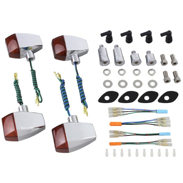 ポッシュ POSH ウインカーキット ZRタイプ05年-07年 ホンダ CB1300スーパーボルドール05年-13年 ホンダ CB400スーパーボルドールカラー:メッキボディ/オレンジレンズレンズタイプ:スタンダード(ダイヤモンドカット)ウインカー本体素材:樹脂製レンズ素材:ポリカーボネート付属電球:フロント(W球)12V23/8W、リア(S球)12V23W【セット内容】・ウインカー本体W球x2個・ウインカー本体S球×2個・延長ステー20mmx2本・延長ステー40mmx2本・M10X20六角ボルトx4本・M10ワッシャー/Sワッシャー各4個・フロントステーベースx2枚・リアステーベースx2枚・ホンダウインカー変換カプラーx4本・防水キャップx4個【仕様説明】ZRタイプ ハイグレードなミドルサイズウインカーです。耐久性を重視した樹脂製ボディに、レンズにポリカーボネートを採用。ウインカーステーはねじ込み式で、見た目もスッキリ、後付け感もありません。一台分に必要なパーツを全てパッケージング、配線加工不要のボルトオン設計。ウインカー本体、レンズ、ソケット、ステーベースは国内生産。スダッドボルト、ナット、ワッシャー類は全てステンレス製でハイクオリティな仕上がりになっています。※フロントポジションランプ点灯します。※専用ステーベース・変換コード付き。
