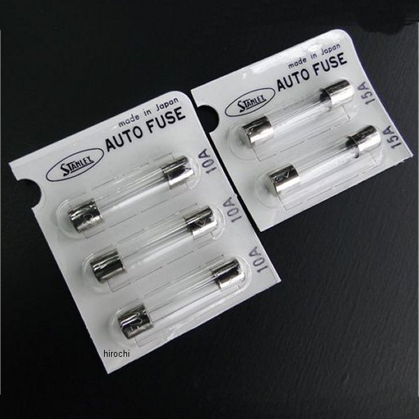 ビーアールシー BRC 純正管ヒューズ 10A×3個 15A×2個74年-77年 ホンダ CB400F 398cc/408cc (逆車にも対応可)純正対応品番:98200-20700・98200-21500内容:10A×3個/15A×2個=合計5個全長:30mmパーツリストでは7Aと表示されておりますが7Aは生産中止の為現在10Aに変更となっております。メーカーはスタンレー製で安心の日本製です。通常、使用しているのは3個ですがヒューズボックスにスペアーが2個入っておりますので1台分として5個セットになっております。尚、修理で使用する場合、故障原因が電気系統でショートの場合は直るまでヒューズの交換が何回か必要ですので、個数を多めに買った方がお得です。※メーカー欠品の場合、長期納期となります。ご了承ください。