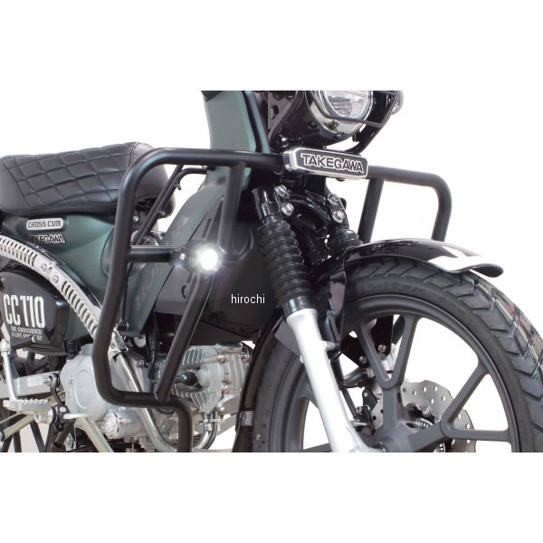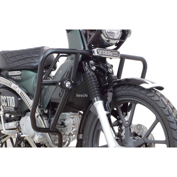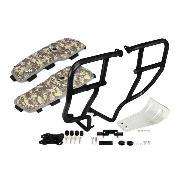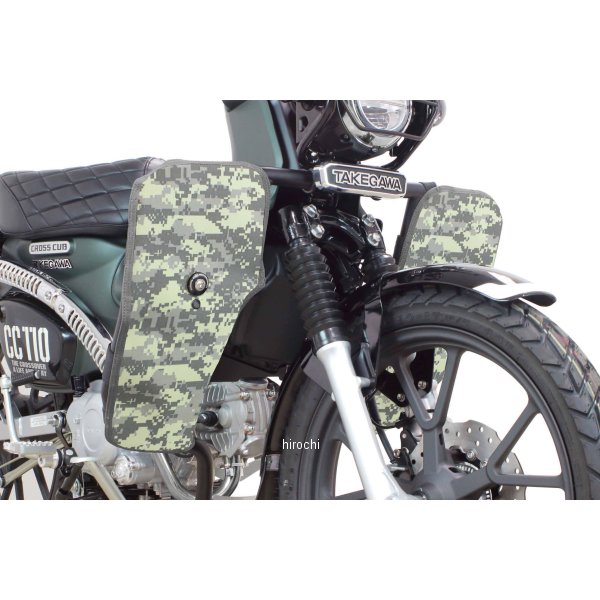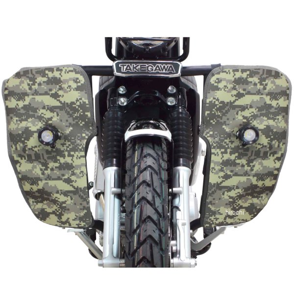06-00-0018 SP武川 レッグバンパー&シールドキット18年-22年 ホンダ クロスカブ18年-21年 ホンダ クロスカブ 11022年 ホンダ クロスカブ110カラー:迷彩(ACU)【注意事項】Φ25.4スチール製パイプを採用した強固なサイドバンパーです。本製品を装着することで、立ちごけ等の軽度な転倒に対し、エンジンやチェンジペダルへのダメージを軽減します。又、付属のレッグシールドをサイドバンパーに装着することで、風防効果を得ることができます。これにより、ライダーの疲労を軽減すると共に走行中、フロントタイヤが巻き上げる水や泥などから自身を守ることが出来ます。レッグシールド(左右)の装着は、裏面にあるベルクロをパイプに巻きつけ、中央にあるボスにボルトとアルミ削り出しリテーナーでしっかりと固定します。この固定部分のボスには、フォグランプキット(別売)を装着することができます。更にサイドバンパー本体のストレート部分には、アクションカメラやペットボトルホルダー(別売)なども装着できます。アルミ製アンダーガード付属。サイドバンパー本体:スチール製パイプブラック塗装仕上げです。レッグシールド:強化ナイロン製