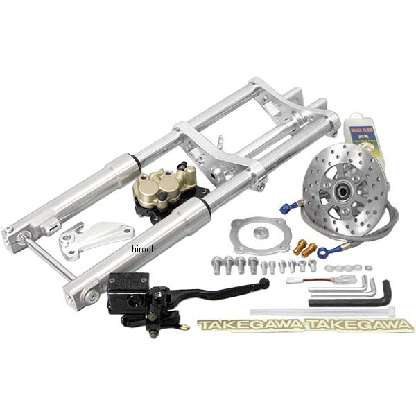 SP武川 φ27フロントフォークキット78年-90年 ホンダ ゴリラ98年-07年 ホンダ ゴリラ78年-97年 ホンダ モンキー99年-17年 ホンダ モンキーバーハンドル用フロントフォーク:タイプ2対象ホイール:8インチ ノーマルホイールがそのまま使用可能ブレーキ仕様:ディスクブレーキフェンダー:無しオフセット長:40mmトップブリッジ&ステムカラー:シルバー【特徴】路面からの衝撃吸収と共に路面の追従性を高め、安定した走行をお楽しみ頂けるフロントフォークキットです。8インチホイール車のホイールベースとスポーツ走行での操作性を考慮し、8インチに最適なフォーク長、ストローク量、ダンパー構造を追求したオリジナルフロントフォークです。減衰力の発生機構にフリーバルブタイプを採用することで、リバウンド時のショックを低減しております。