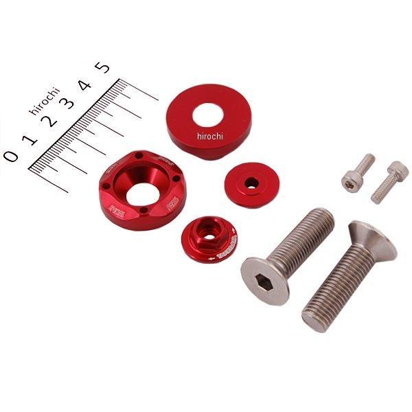 トップボルトセットです。78年-90年 ホンダ ゴリラ98年-07年 ホンダ ゴリラ88年-99年 ホンダ シャリー5081年-87年 ホンダ シャリー7078年-97年 ホンダ モンキー99年-17年 ホンダ モンキーカラー:レッド(キャップ/リテーナー同色)2個アルミ削り出しアルマイト処理締め付け用ボルトネジ部:長さ30mmモンキー・ゴリラのノーマルトップブリッジのドレスアップパーツです。イニシャルアジャスターをモチーフとしたデザインはカスタムイメージを高めます。アルミを精巧に削り出し、アルマイトを施すことでトップブリッジ周りを美しく演出します。ノーマルトップボルトと異なり、リテーナー部とキャップ部の色の組み合わせもお楽しみ頂けます。販売のカラーはキャップとリテーナーが同色になります。