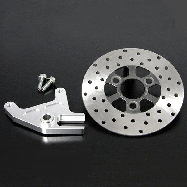 ブレンボキャリパー取付け用ブラケットキット(リジットタイプ)です。78年-90年 ホンダ ゴリラ98年-07年 ホンダ ゴリラ78年-97年 ホンダ モンキー99年-17年 ホンダ モンキー■取付け対象仕様リアディスクダンパーハブ(タイプ2)装着車が対象になります。対象キット品番06-08-1762/06-08-1761/06-08-1760/06-08-0025初期型アルミ削り出しダンパーハブを装着されている車両には取付け出来ません。非対応キット品番:06-08-1754/06-08-175310インチ(3.5Jまで)/12インチホイール車が対象になります。8インチホイールには取付け出来ません。■ 注意事項初期型アルミ削り出しダンパーハブを装着されている車両には取付け出来ません。非対応キット品番:06-08-1754/06-08-175310インチ(3.5Jまで)/12インチホイール車が対象になります。8インチホイールには取付け出来ません。リアディスクダンパーハブ(タイプ2)を採用した各キットに付属しているブレーキホースは使用出来ない為、バンジョーとブレーキホースを別途ご購入頂く必要があります。弊社製スリムラインホースを使用する場合、brembo社製対向2Pキャリパー専用のバンジョーボルトM10×1.0 品番00-07-0079、ブレーキホース、バンジョーをご購入頂くことで使用可能になります。ブレーキホース長、バンジョー(角度)は車両の仕様により異なる為、WEBカタログをご覧下さい。製品にはbrembo社製対向2Pキャリパーは付属していません。brembo社製対向2Pキャリパー(20-6951)の別途購入が必要になります。brembo社製品は弊社では取扱っておりません。リジットタイプを装着する場合、パネルストッパーが無い又は短く加工しているスイングアームには回り止めが機能しない為、取付け出来ません。
