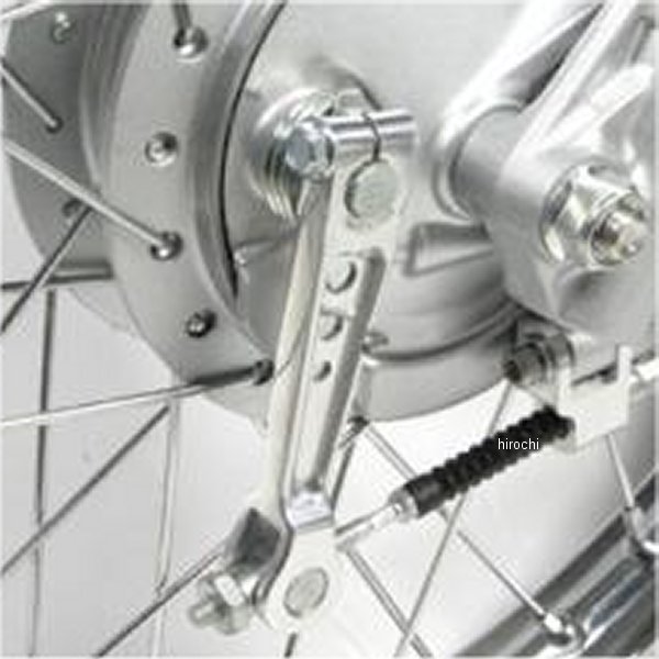 SP武川 強化ブレーキアームキット12年-21年 ホンダ スーパーカブ11012年-17年 ホンダ スーパーカブ110プロ12年-22年 ホンダ スーパーカブ5012年-17年 ホンダ スーパーカブ50プロ装着時のブレーキアームの長さ:ノーマルから27mm延長ブレーキアームの重さ:ノーマルから30%軽量化本製品はノーマルブレーキアームより27mm延長し、レバー比を変更することで、ノーマルよりも軽いタッチでブレーキングが出来ます。又、キットにはケーブルアダプターが付属している為、ブレーキアームが延長されてもブレーキケーブルが斜めになりません。ボアアップなどで最高速度が上がった場合車両へのブレーキの強化にお勧めです。ブレーキアームはアルミ合金を鍛造成形することで強度を高めています。又、スチール製ノーマルブレーキアームに比べ、軽量化を実現しました。ブレーキアームの表面にはバフ研磨を施し、装着時のドレスアップ効果を高めます。ケーブルアダプターはアルミ材を削り出し、シルバーアルマイトを施しています。SP武川製ブレーキアジャストナット、ブレーキアームジョイントの同時装着が可能です。同時装着することで、更にカスタムイメージを高めることが出来ます。※ノーマルフロントドラムブレーキ用になります。リアドラムブレーキには使用出来ません。※装着するとブレーキをかける作動角度(レバーを握る量)が増えます。