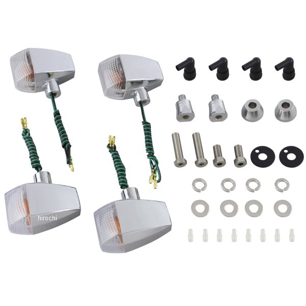 ポッシュ POSH ウインカーキット ZRタイプ94年-97年 ヤマハ XJR120098年-99年 ヤマハ XJR130007年-17年 ヤマハ XJR130093年 ヤマハ XJR40094年 ヤマハ XJR400Sカラー:メッキボディ/クリアレンズレンズタイプ:スタンダード(ダイヤモンドカット)ウインカー本体素材:樹脂製レンズ素材:ポリカーボネート付属電球:フロント(S球)12V23W、リア(S球)12V23W【セット内容】・ウインカー本体S球×4個・延長ステー20mmx2本・M10X20六角ボルトx2本・M10X40六角ボルトx2本・M10ワッシャー/Sワッシャー各4個・ウインカーステーベースx2枚・ウインカー台座x2個・防水キャップx4個【仕様説明】ZRタイプ ハイグレードなミドルサイズウインカーです。耐久性を重視した樹脂製ボディに、レンズにポリカーボネートを採用。ウインカーステーはねじ込み式で、見た目もスッキリ、後付け感もありません。一台分に必要なパーツを全てパッケージング、配線加工不要のボルトオン設計。ウインカー本体、レンズ、ソケット、ステーベースは国内生産。スダッドボルト、ナット、ワッシャー類は全てステンレス製でハイクオリティな仕上がりになっています。