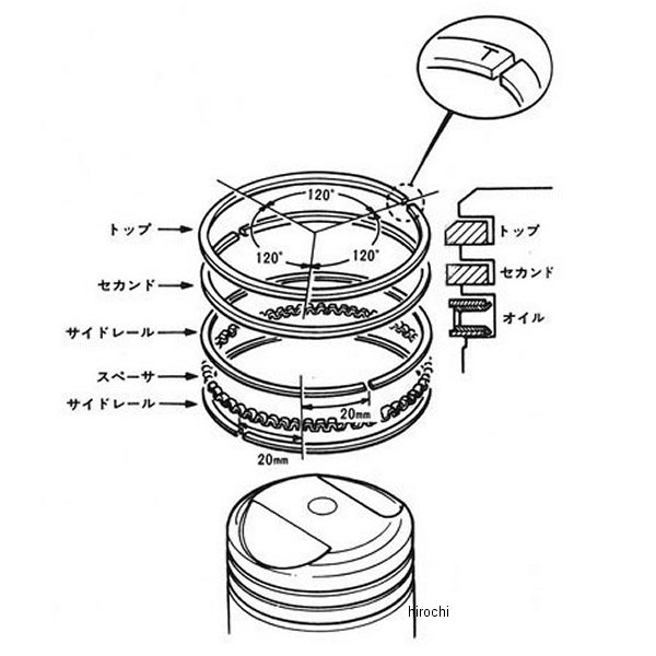 ビーアールシー BRC ピストンリング STD75年-77年 ホンダ CB400F 398cc/408cc (逆車にも対応可)純正対応品番:13011-377-003(ニッポン)・13011-377-005(テイコク)・13011-377-701(リケン)4個セットなお(ニッポン)は日本ピストンリング製。(テイコク)は帝国ピストンリング製。(リケン)はリケン製となります。このピストンリングに対応するピストンサイズは51mmでノーマル用となります。このピストンリングは帝国ピストンリング製(日本製)となりますので398cc・408cc共に安心して使用できます。エンジン分解時にピストンやシリンダーの磨耗が少ない場合ピストンリングのみの交換をされる場合に特に向いております。注意/警告ピストンリングはトップとセカンドが厚みが同じですので間違がわないようにご注意下さい。トップは茶色で縁取りがあるタイプでセカンドは黒っぽい方です。オイルリングはまず蛇腹を入れてから薄いリングを上と下に入れて下さい。順番通りに入れないと全く入りませんので必ず順番を守って入れて下さい。古いピストンリングを外した後、溝のカーボン(汚れ)を完全に落とさないとリングがスムーズに入りませんのでご注意下さい。このピストンリングは純正のピストンリングに比べリングの張力が非常に強く単体で見ると合口の隙間がかなり広いのが特徴です。組み込んでしまえば合口の隙間は純正規定値になりますが、この高い張力により気密性が上がり圧縮性能を向上させるとともにオイル上がりを長期間にわたり防止する要因になっております。高張力で合口の隙間が大きい事によりシリンダースリーブへの挿入難易度は純正に比べ困難になりますが製品不良ではございませんので予めご理解頂きますようお願い申し上げます。入れずらい事で有名なワイセコのピストンリングも同じTP製です。※メーカー欠品の場合、長期納期となります。ご了承ください。