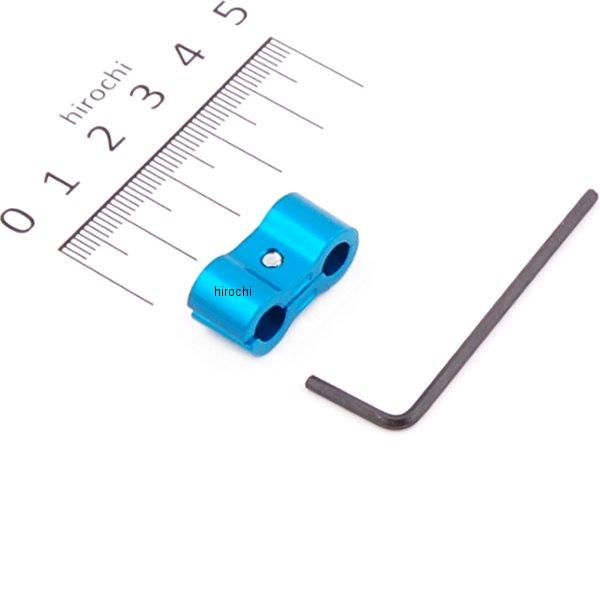 ホースセパレーター(1個 / Lレンチ付属)ブルーです。SP武川社製スリムラインホース(オイルクーラー用)/外径6mmホース用※ホース長が短いオイルクーラーキットには取付け出来ない場合があります。使用されているホースをご確認の上、ご購入下さい。 ※SP武川社製スリムラインホースはステンレスブレードホースを採用している為、ホースセパレーターのホースクランプ部に傷が入る可能性があります。 ● SP武川社製スリムラインホース仕様のオイルクーラーキット装着時に2本のホースを綺麗にまとめることが出来ます。アルミ製にカラーアルマイトを施したホースセパレーターを使用することで、タイラップでホースをまとめるよりもドレスアップ効果を高め、ホース回りだけで無く、車両全体のカスタムイメージを向上させることが出来ます。
