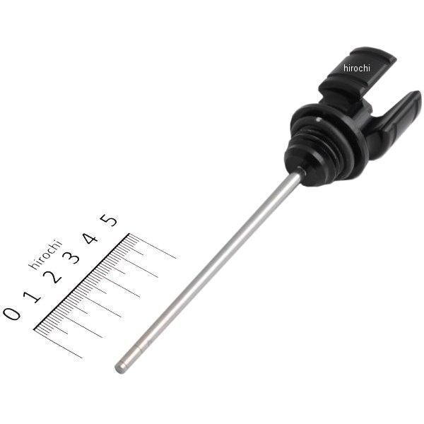 アルミ削り出しオイルレベルゲージです。 11年-14年 ホンダ ディオ110・カラー:ブラック・アルミを大胆に削り込み、存在感と指先での回しやすさを両立したオイルレベルゲージ。・キャップ部は鮮やかなシルバー、ブラック、ブルー、レッドのアルマイト仕上げ4色をご用意しました。中央部にはTAKEGAWA社"ピストンマーク"のレーザーマーキングを施し、エンジン回りのワンポイントカスタムに存在感をプラス。・ゲージ部はオイルレベルの目安となるスリット入りでノーマル同様の整備性を保持しております。