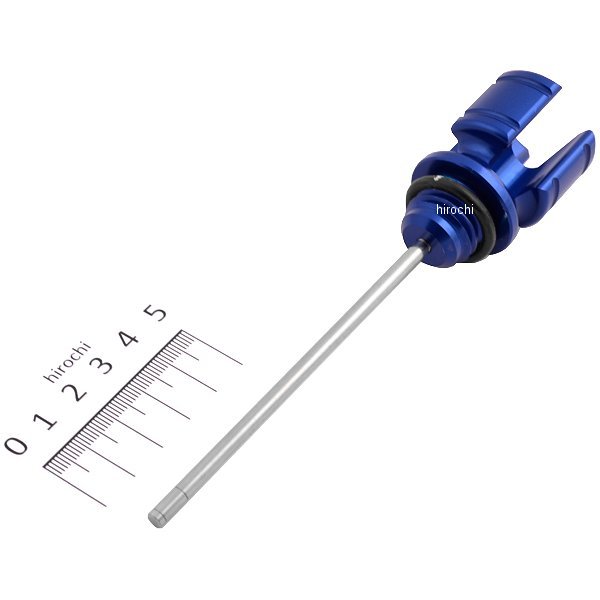 アルミ削り出しオイルレベルゲージです。 11年-14年 ホンダ ディオ110・カラー:ブルー・アルミを大胆に削り込み、存在感と指先での回しやすさを両立したオイルレベルゲージ。・キャップ部は鮮やかなシルバー、ブラック、ブルー、レッドのアルマイト仕上げ4色をご用意しました。中央部にはTAKEGAWA社"ピストンマーク"のレーザーマーキングを施し、エンジン回りのワンポイントカスタムに存在感をプラス。・ゲージ部はオイルレベルの目安となるスリット入りでノーマル同様の整備性を保持しております。