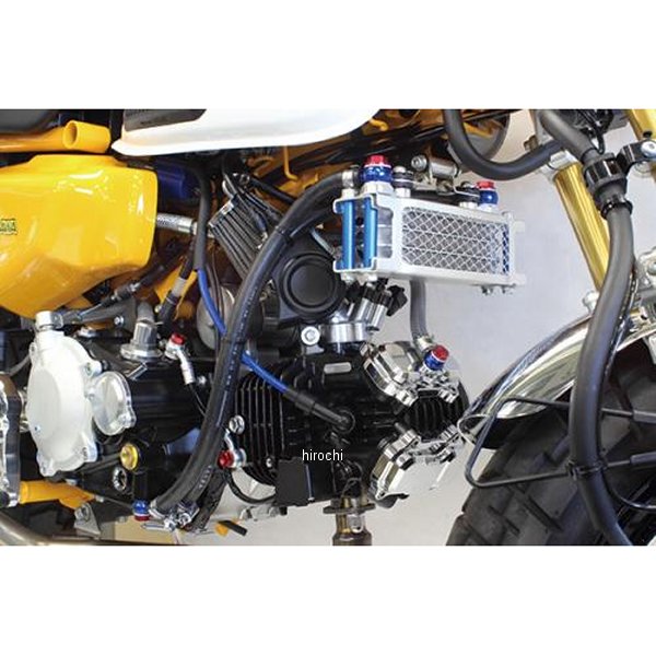 SP武川 コンパクトクールキット19年-21年 ホンダ モンキー125オイルクーラー本体の段数:3フィン4オイルラインオイルホースの種類:ラバーホース標準装備:オイルクーラープレート、ガード【下記クラッチカバーと対象エンジンパーツの同時装着が必要です】・SP武川製スペシャルクラッチカバー・武川製ハイパーチューニングキット(ハイコンプピストン)(ビッグスロットルボディー仕様)装着車・SP武川製ボアアップキット(ビッグスロットルボディー仕様)装着車【仕様説明】武川社製ビッグスロットルボディー付きハイコンプピストンキット、又は各種ボアアップキットを装着し、武川社製スペシャルクラッチカバーキットを取付けした車両が対象となるオイルクーラーキットです。本製品は純正エアクリーナーボックスを取外し、フレーム下に付属のオイルクーラーステーを取付け、オイルクーラー本体を固定します。これにより、歴代のモンキーカスタムと同じスタイルにすることが出来ます。オイルクーラーへのオイル取出しは、武川社製スペシャルクラッチカバーにあるオイル取出し口を使用します。※本製品は武川社製ビッグスロットルボディー付きハイコンプピストンキット、又は各種ボアアップキットを装着し、SP武川社製スペシャルクラッチカバーキットを取付けした車両が対象となります。※ノーマルエアクリーナーボックス、ノーマルクラッチカバーとの同時装着は出来ません。※ラバーホース仕様に関しましては、武川社製アップマフラー(スポーツマフラー)との同時装着は出来ません。※オイル量は通常規定オイル量に3フィン:約40ccを追加して下さい。