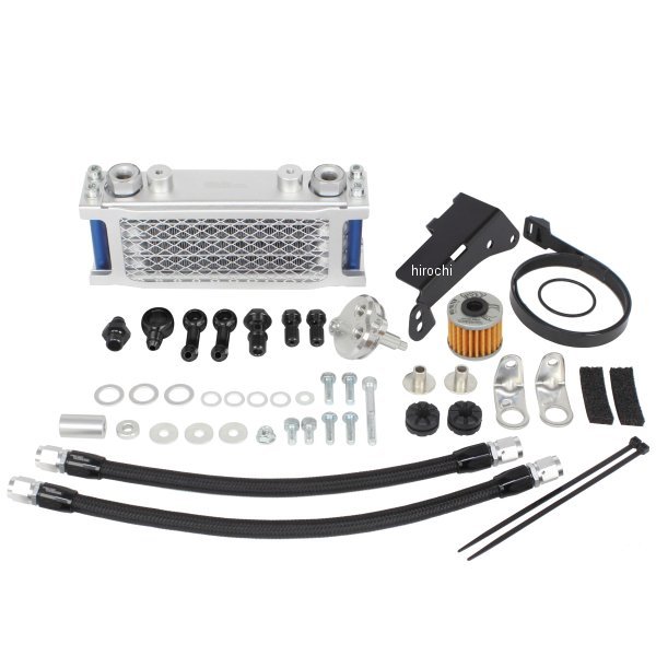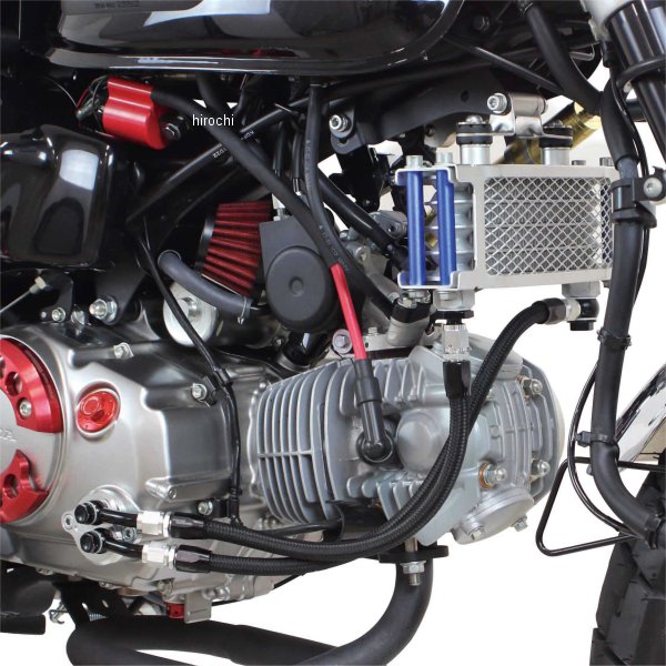 SP武川 コンパクトクールキット ブレードホース#421年-25年 ホンダ モンキー125タイプ:4フィン5オイルラインSP武川製エアフィルターキット(ノーマルスロットルボディー用)、ノーマルクラッチカバー装着車用【仕様説明】ノーマルエアクリーナーボックス、ノーマルコネクティングチューブを取り除き、ノーマルスロットルボディーに直接装着するSP武川製エアフィルターキットを取り付けることで、装着可能となるオイルクーラーキットです。オイルクーラー本体は、ノーマルエアクリーナーボックスを取外したスペースに、付属のオイルクーラーステーを取り付け、フレーム下に固定します。これにより、歴代のモンキーカスタムと同じスタイルにすることが出来ます。オイルクーラーへのオイル取出しは、ノーマルクラッチカバーにあるオイルフィルター部にキット付属のオイルクーラーユニットを装着することで、オイルクーラーへのオイル取出しが行えます。オイルクーラーユニット装着時でも使用可能な専用オイルフィルターが付属している為、オイルフィルター機能を損なうことなく、オイル取出しが行えます。オイルクーラーユニットは純正フィルターカバーと同様リリーフバルブ機構を備え、更にネオジムマグネットを設置していますのでエンジンオイルに混ざった鉄粉を吸い寄せます。オイル取出し口からオイルクーラー本体への接続には、ブレードホース#4を採用。オイルクーラー本体の段数は4フィン5オイルラインと3フィン4オイルラインをラインナップ。【特徴】・クーラー本体は冷却効果に優れたコンパクトクールを採用。・オイルクーラーを取付けることで、エンジンボアアップに伴う油温上昇を抑えることが出来る。・オイルクーラープレート、ガードが標準装備。・ノーマルマフラー、又はSP武川製各種マフラーとの同時装着が可能。・SP武川製ステアリングダンパーセットとの同時装着が可能。※本製品を装着する場合、ノーマルエアクリーナーボックス、コネクティングチューブを取り外し、SP武川製エアフィルターキット(ノーマルスロットルボディー用)を取り付ける必要があります。※対象製品:エアフィルターキット(ノーマルスロットルボディー用)ブラックエレメント(03-01-0037)、レッドエレメント(03-01-0038)※オイル量は通常規定オイル量に4フィンは約60cc、3フィンは約40ccを追加して下さい。