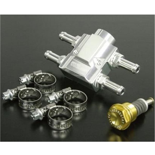 SP武川 インラインサーモユニットキット汎用(内径8mmのSP武川製ラバーホースにてオイルクーラー取付車両に対応)オイルクーラー本体とオイル取出し口をつなぐオイルホースの中間にこのインラインサーモユニットを装着することで、サーモスタット機能を追加することが出来ます。SP武川製サーモスタット機能付きクラッチカバーを装着しなくてもオーバークールを防止することが出来ます。