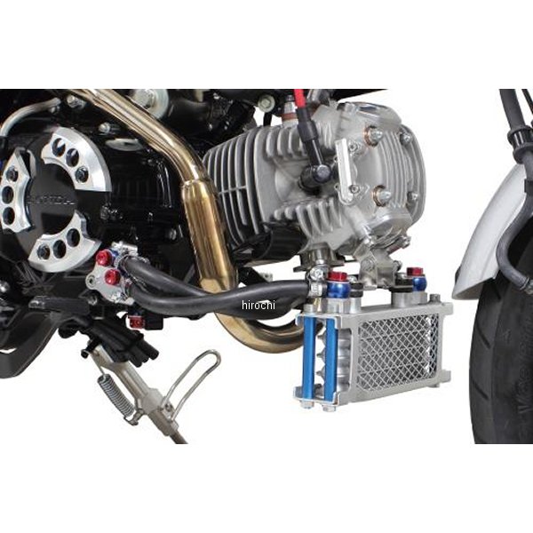 SP武川 コンパクトクールキット 4フィン/ラバーホースホンダ ダックス125(JB04-1000001~/JB06-1000001~)対象仕様:SP武川製スーパーヘッド4V+Rボアアップキット装着車【商品説明】・オイルクーラー本体の取り付け位置シリンダーヘッド(SP武川製スーパーヘッド4V+R)ヘッドのインスペクションカバー部にブラケットを装着し、オイルクーラー本体を取付けます。・オイル取出し口ノーマルクラッチカバーにあるオイルフィルター部にキット付属のオイルクーラーユニットを装着することで、オイルクーラーへのオイル取出しが行えます。オイルクーラーユニット装着時でも使用可能な専用オイルフィルターが付属している為、オイルフィルター機能を損なうことなくオイル取出しが行えます。オイルクーラーユニットは純正フィルターカバーと同様リリーフバルブ機構を備え、更にネオジムマグネットを設置していますので、エンジンオイルに混ざった鉄粉を吸い寄せます。・コンパクトクール本体についてクーラー本体は冷却効果に優れたコンパクトクールを採用。オイルクーラーを取付けることで、エンジンボアアップに伴う油温上昇を抑えることが出来ます。オイルクーラープレート、ガードが標準装備。【注意事項】ノーマルクラッチカバー、及びSP武川製スーパーヘッド4V+Rボアアップキット装着車用になります。フロントマッドガードの取り外しが必要になります。SP武川製エンジンガードとの同時装着は出来ません。悪路走行やオフロードでの使用は、行わないで下さい。オイル量は通常規定オイル量に4フィン:約60cc/3フィン:約40cc追加して下さい。