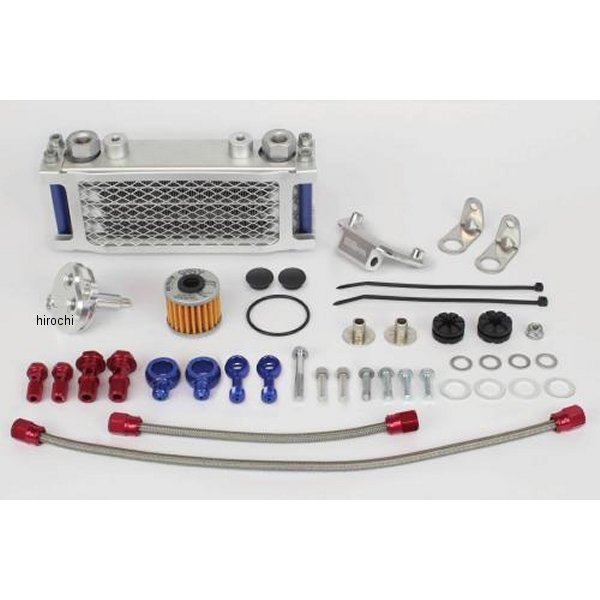 SP武川 コンパクトクールキット 4フィン/スリムラインホースホンダ ダックス125(JB04-1000001~/JB06-1000001~)対象仕様:SP武川製スーパーヘッド4V+Rボアアップキット装着車【商品説明】・オイルクーラー本体の取り付け位置シリンダーヘッド(SP武川製スーパーヘッド4V+R)ヘッドのインスペクションカバー部にブラケットを装着し、オイルクーラー本体を取付けます。・オイル取出し口ノーマルクラッチカバーにあるオイルフィルター部にキット付属のオイルクーラーユニットを装着することで、オイルクーラーへのオイル取出しが行えます。オイルクーラーユニット装着時でも使用可能な専用オイルフィルターが付属している為、オイルフィルター機能を損なうことなくオイル取出しが行えます。オイルクーラーユニットは純正フィルターカバーと同様リリーフバルブ機構を備え、更にネオジムマグネットを設置していますので、エンジンオイルに混ざった鉄粉を吸い寄せます。・コンパクトクール本体についてクーラー本体は冷却効果に優れたコンパクトクールを採用。オイルクーラーを取付けることで、エンジンボアアップに伴う油温上昇を抑えることが出来ます。オイルクーラープレート、ガードが標準装備。【注意事項】ノーマルクラッチカバー、及びSP武川製スーパーヘッド4V+Rボアアップキット装着車用になります。フロントマッドガードの取り外しが必要になります。SP武川製エンジンガードとの同時装着は出来ません。悪路走行やオフロードでの使用は、行わないで下さい。オイル量は通常規定オイル量に4フィン:約60cc/3フィン:約40cc追加して下さい。
