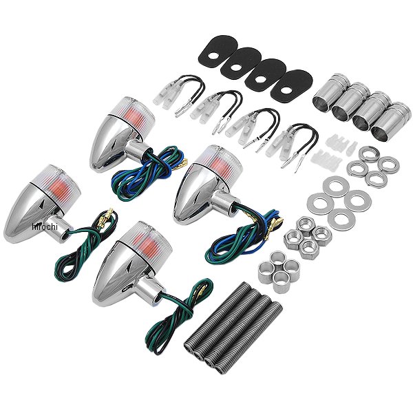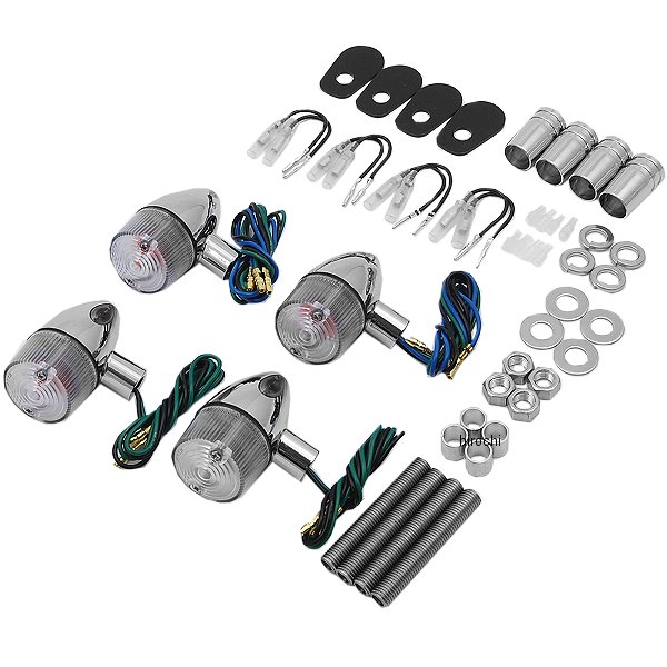 ポッシュ POSH クラシカル砲弾タイプ ウインカーセット クロームボディ/クリアレンズ99年-01年 カワサキ ZR-797年-00年 カワサキ ZRX110097年-00年 カワサキ ZRX1100-294年-00年 カワサキ ZRX400ZRX4002不可取り付けに必要なパーツが全て揃ったボルトオンキット。フロント/リアのバルブもセットした1台分のセット新規金型で制作され仕上げ質感を向上、亜鉛ダイキャストボディの採用によりカラー:クロームの美しさを追求、従来品のアルミバフ仕上げとは異なった輝きをお確かめ下さい。ブラックは焼付け塗装となります。