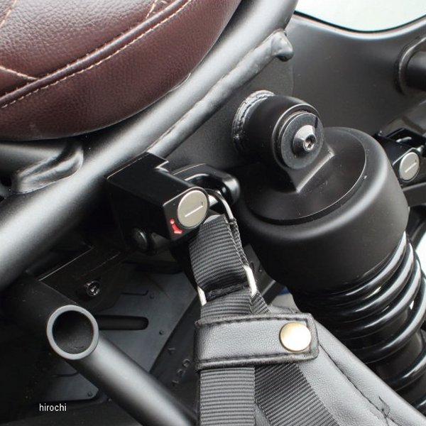 08-01-0176 SP武川 ヘルメットホルダーセット シート下 17年-23年 ホンダ レブル20年-23年 ホンダ レブル 50017年-19年 ホンダ レブル ABS【仕様説明】シート下にヘルメットホルダーを増設するセットです。ライダーとパッセンジャーのヘルメットをオートバイに取り付けできます。又、サイドバッグサポートを取り付け、サイドバッグを固定した場合など、純正ヘルメットホルダーが扱いにくくなった際に有効に活用いただけます。セキュリティーを高める為、盗難抑止対策ボルトを採用。製品構成には、専用Lレンチが付属。SP武川オリジナルピストンキー(2個)付属。ステー本体はスチール製ブラック塗装仕上げ【注意事項】※主にヘルメットのあごひもにあるDカンを使用しロックする為、ヘルメットにDカンが無いもの、又はDカンが短くロック部分に届かないものは、使用できない場合があります。