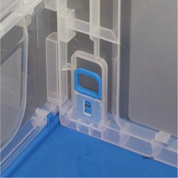 SP武川 折り畳みコンテナ50Lカラー:クリアブルー【サイズ】外寸:525mm×365mm×340mm内寸:485mm×332mm×310mm折り畳み時の厚さ:100mm中窓(長辺):380mm×160mm中窓(短辺):215mm×180mm本体重量:約3kg許容重量:20kg(静荷重)積み上げ最大段数:5段SP武川ステッカー(Mサイズ)2枚入り【仕様説明】本製品は不使用時に折り畳むことができるコンテナです。コンテナに透明部分を採用することで、開閉せずに荷物を確認することができます。コンテナは上部開口以外に2ヶ所中窓がついている為、サイドからも荷物の出し入れが行えます。中窓部は全てスライドロック機能付き。更にコンテナの内側を固定するロック機能付き。上部開口部は結束バンドなどで簡易的なロックが可能。コンテナの各開口部には、セキュリティー用のロックホールがついている為、ワイヤー式ダイヤルロック等の取り付けが可能です。※セキュリティーロックは付属しておりません。※ワイヤーロック以外のダイヤルロックの場合、ロックホールに適合しない可能性があります。