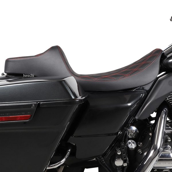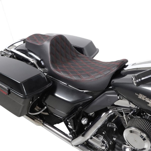 0801-1371 DRAG Specialties ドラックスペシャリティーズ シート プレデター3 2アップ ER ダブルダイヤモンド 赤06年-07年 ハーレー FLHX Street Glide 06年 ハーレー FLHXI Street Glide 04年-06年 ハーレー FLHRS Road King Custom 99年-06年 ハーレー King ダブルダイヤモンド/レッドステッチユニークなスタイルの高さ6-1/2インチのドライバーサポートが特徴です純正シートと比較してライダーを1-1/2インチ後ろに移動します自動車グレードのビニールカバー最大限の快適さとスタイルを実現する成型ポリウレタンフォーム完璧なフィット感を実現する 3/16 インチ ABS 熱成形シートベース、完全にカーペット敷きの底部、塗装を保護するゴム製バンパー座面エリアは輪郭があり、前方が狭くなっているので、足のクリアランスが向上します。すべてのドラッグバーとほとんどの HD シーシーバーに適合します。アメリカ製。ダッシュ下部エクステンションパーツ #2202-0070 を使用すると、シートは 97 ~ 2007 年の FLT/FLHT/FLR モデルに適合します。