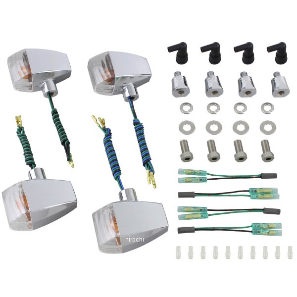 ポッシュ POSH ウインカーキット ZRタイプ01年-08年 スズキ GSX140099年 スズキ GSX400インパルス05年-08年 スズキ GSX400インパルス97年-02年 スズキ イナズマ98年-99年 スズキ イナズマ1200カラー:メッキボディ/クリアレンズレンズタイプ:クリスタルカットウインカー本体素材:樹脂製レンズ素材:ポリカーボネート付属電球:フロント(W球)12V23/8W、リア(S球)12V23W【セット内容】・ウインカー本体W球x2個・ウインカー本体S球×2個・HG延長ステー20mmx4本・M10X20六角ボルトx4本・M10ワッシャー/Sワッシャー各4個・防水キャップx4個・変換カプラーコードx4本【仕様説明】ZRタイプ ハイグレードなミドルサイズウインカーです。耐久性を重視した樹脂製ボディに、レンズにポリカーボネートを採用。ウインカーステーはねじ込み式で、見た目もスッキリ、後付け感もありません。一台分に必要なパーツを全てパッケージング、配線加工不要のボルトオン設計。ウインカー本体、レンズ、ソケット、ステーベースは国内生産。スダッドボルト、ナット、ワッシャー類は全てステンレス製でハイクオリティな仕上がりになっています。※変換カプラーコード付き。※フロントポジションランプ点灯します。※インパルスタイプS不可。