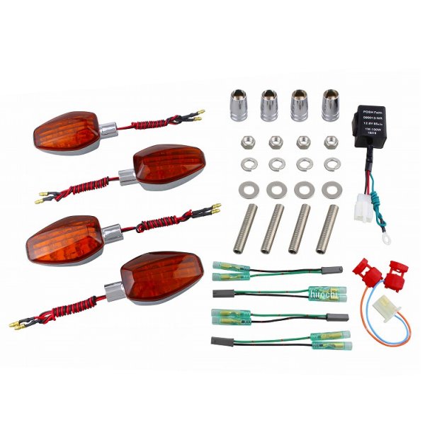 ポッシュ POSH ライトウエイトLEDウインカーセット スズキ GSX1400スズキ イナズマ1200スズキ イナズマ40099年- スズキ GSX400インパルスカラー:メッキボディ/オレンジレンズ【セット内容】・ウインカー本体W球×2個・ウインカー本体S球×2個・延長ステー20mm×4本・M10×55スタッドボルト×4本・M10ナット/ワッシャー/Sワッシャー各4個・変換カプラーコード×4本・LED対応ウインカーリレー×1個・リレー変換ハーネス(スズキ)×1個【仕様説明】一台分に必要なパーツを全てパッケージングしました。ポリカーボネートボディ、スリムなデザインのLED内臓ウインカーです。※LED対応ウィンカーリレー・変換カプラーコード付き。※純正リレーの加工が必要です。※インパルスタイプS不可。