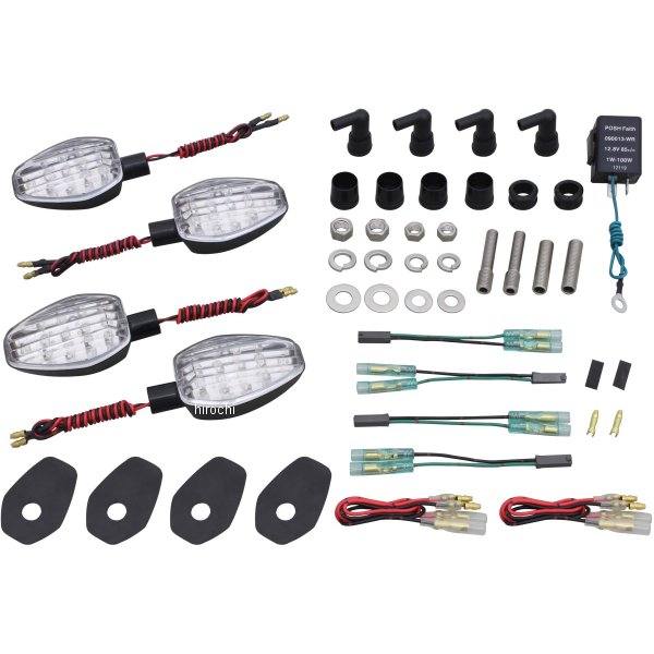 ポッシュ POSH ライトウェイトLEDウインカーセット16年-19年 スズキ GSX-S1000Fボディカラー:ブラックレンズカラー:クリア【セット内容】・ウインカー本体S球×4個・延長ステー5mm×4本・M10X40スタッドボルト×2本・M10-M8変換スタッドボルト50mm×2本・M10ナット/ワッシャー/Sワッシャー各4個・変換カプラーコード×4本・ウインカーステーベース×4枚・リヤウインカー用カラー×2個・延長コード30cm(赤黒)×各2本・LED対応ウインカーリレー×1個・防水キャップ×4個【仕様説明】・軽量ポリカーボネートボディ、ステーをウインカーボディーと一体化したスリムなデザイン・LED対応ウィンカーリレー、変換カプラーコード付き。