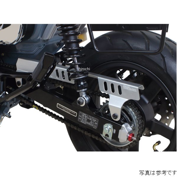 SP武川 アルミチェーンガード23年-25年 ホンダ ダックス125【仕様説明】ノーマルの樹脂製チェーンガードからレトロスタイルを採用したアルミチェーンガードに変更することで、ドレスアップ効果を高めます。チェーンガードの役割を重視しながら、リア周りをスタイリッシュにまとめることができます。アルミチェーンガードの表面には、シルバーアルマイトを施しています。SP武川ロゴのレーザーマーキング入りノーマルリアショック、又はSP武川製リアショックアブソーバーとの同時装着が可能です。