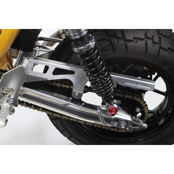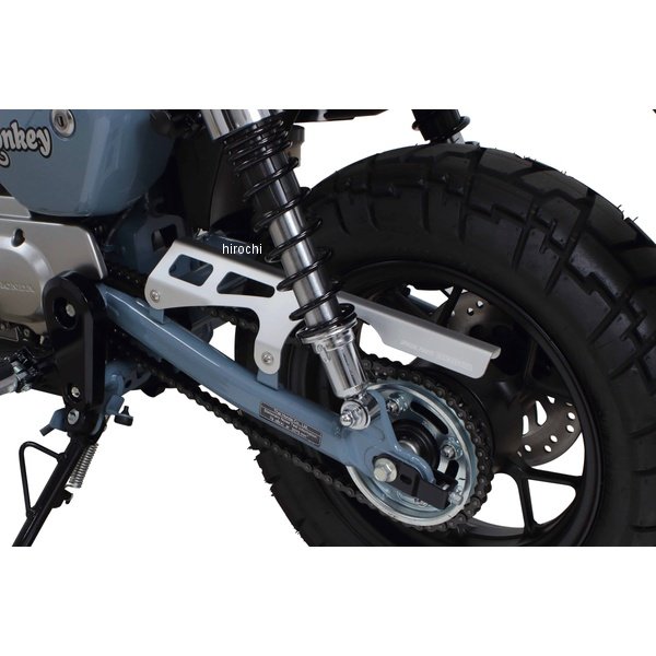 SP武川 アルミチェーンガード18年以降 ホンダ MONKEY125ノーマル形状とは異なったシャープなデザインのアルミ製チェーンガードです。チェーンガードとしての役割を重視しながら、リア周りをスタイリッシュにまとめることが出来ます。表面にはアルマイトが施されています。ボルト類には耐腐食性に優れたステンレス製を採用。ノーマルスイングアームと弊社製アルミスイングアームのどちらにも対応します。
