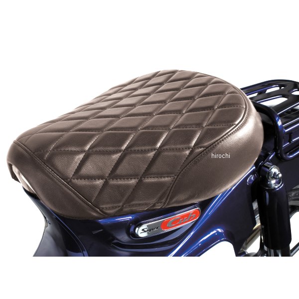 SP武川 クッションシートカバー 18年-20年 ホンダ スーパーカブC125カラー:ブラウンノーマルシートに被せるだけの簡単装着で、デザイン性とクッション性に優れたシートへ変更することが出来ます。特殊スポンジ入り表皮の採用による振動の軽減とクッション性の向上。表皮に耐振動性、クッション性に優れた特殊スポンジを貼り付けることで、路面から伝わる振動の軽減と優れたクッション性を兼備えております。通勤、ロングツーリング時に起こる疲労が軽減され、快適なライディングをお楽しみ頂けます。シートカバーの座面にはデザイン性を高め、車両に高級感を与えるダイヤモンドステッチを採用。又、フロントとサイドにプレーンなデザインを採用することで、ダイヤモンドステッチを強調し、車両のカスタムイメージを高めます。