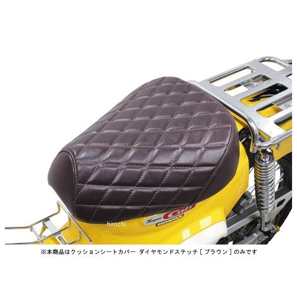 SP武川 クッションシートカバー18年-25年 ホンダ クロスカブ18年-21年 ホンダ スーパーカブ11018年-25年 ホンダ スーパーカブ50カラー:ブラウンシートカバーの座面にはデザイン性を高め、車両に高級感を与えるダイヤモンドステッチを採用。又、フロントとサイドにプレーンなデザインを採用することで、ダイヤモンドステッチを強調し、車両のカスタムイメージを高めます。表皮に耐振動性、クッション性に優れた特殊スポンジを貼り付けることで、路面から伝わる振動の軽減と優れたクッション性を兼備えております。通勤、ロングツーリング時に起こる疲労が軽減され、快適なライディングをお楽しみ頂けます。※取り付けの際 紐を締め上げますが、必要以上に引っ張るとシートカバーが破損します。※ガソリン、シンナー等の有機溶剤がかからないようにして下さい。破損の原因になります。※水濡れ直後に着座すると衣服が濡れる事があります。※表面は乾いていても、中に水分を含んでいる事がありますので、すぐに使用する際にはタオル等で水分を取り除き、衣服が濡れない事を確認してから使用してください。