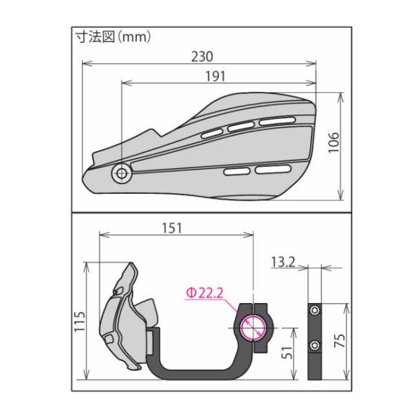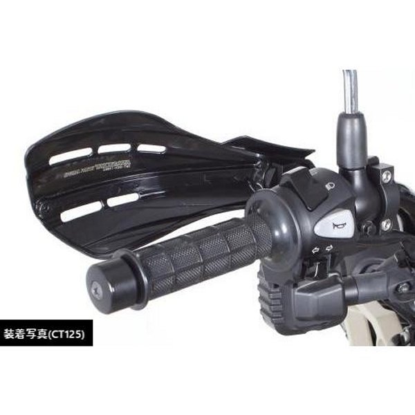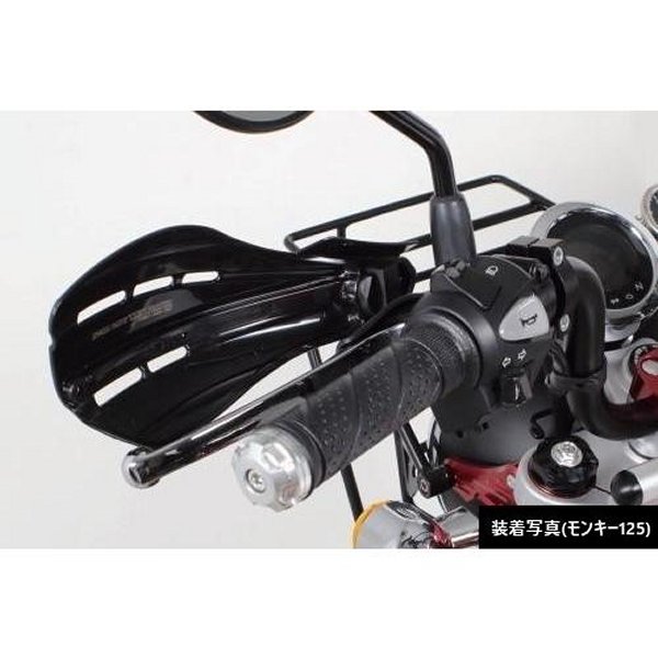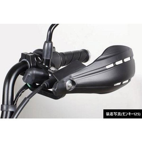 SP武川 ナックルガード 汎用品 φ22.2mm ステアリングパイプ用 マットブラック弊社取付確認車両CT125(JA55)・クロスカブ110(JA10)(JA45)・クロスカブ50(AA06)GROM(JC61)(JC75)・MSX125/SF※1・モンキー125・モンキー125タイモデル(MLHJB02/MLHJB03)※1・ZOOMER FI(AF58)・ZOOMER X(JF52)・ZOOMER Xタイモデル(MLHJF62)※1・Ape50(AC16)・Ape50 FI(AC16)・Ape100(HC07)・モンキーFI(AB27)・12Vモンキー(Z50J)(AB27)ゴリラは除く・Dunk(AF74)(AF78)・KSR110(KL110A-000001)※2・GB350(NC59)/GB350S(NC59)/GB350C(NC64)・MT-125(BVE1)※車種により弊社製ヘルメットホルダー(08-01-0151)と同時装着出来ない場合があります。ナックルガードを装着する事で、林道走行時の小枝等から手元を守る他、風防効果もあり雨風から手元をカバーする事が出来ます。ナックルガード部(樹脂部)にはアルミ材のフレームを混入してあるので、他社製品のナックルガードに比べ強度を高める事が可能になりました。