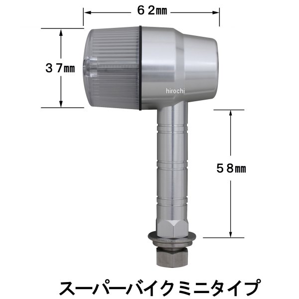 ポッシュ POSH アルミマシンドウインカー スーパーバイクミニボディカラー:シルバーレンズカラー:クリアステー長:スーパーロング取付ネジ径:M10シングル球(バルブ無し)2個入り日本製【付属品】・ステンレスボルトM10X30mmP1.25:2本(組込済)・防水キャップ:2個・ギボシカバー:4個【仕様説明】アルミ削り出しウインカーシリーズ スーパーバイクミニタイプです。鋳造品とは異なったアルミ削り出し独自のカスタムパーツ的な雰囲気を持っています。また、ステー部をウィンカー本体へのねじ込み式にする事で、鋳造品にあるようなステー固定ボルト等を廃止し、よりシャープなデザインとなっております。対応電球はG18型、車両のワット数をご確認の上別途お求めください。※クリア/スモークレンズにはオレンジバルブをご利用ください。※オプションによりLED化可能。