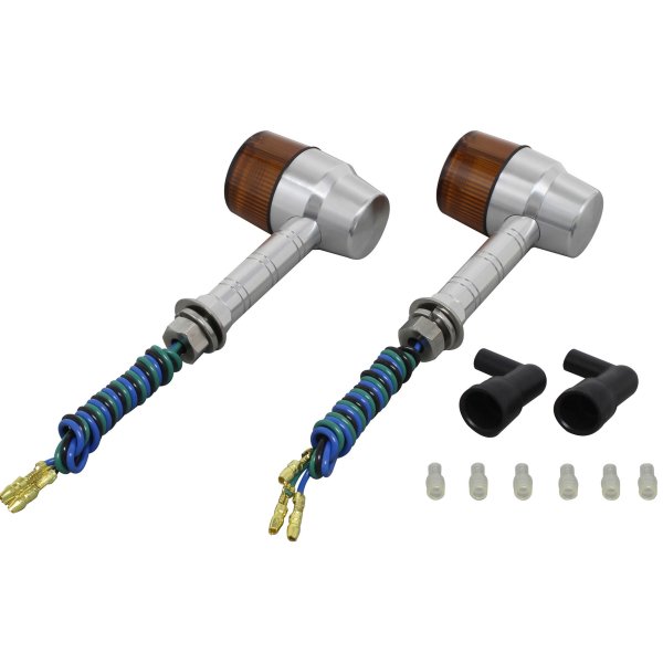 ポッシュ POSH アルミマシンドウインカー スーパーバイクミニボディカラー:シルバーレンズカラー:オレンジステー長:スーパーロング取付ネジ径:M10ダブル球(バルブ無し)2個入り日本製【付属品】・ステンレスボルトM10X30mmP1.25:2本(組込済)・防水キャップ:2個・ギボシカバー:4個【仕様説明】アルミ削り出しウインカーシリーズ 71タイプです。鋳造品とは異なったアルミ削り出し独自のカスタムパーツ的な雰囲気を持っています。また、ステー部をウィンカー本体へのねじ込み式にする事で、鋳造品にあるようなステー固定ボルト等を廃止し、よりシャープなデザインとなっております。対応電球はG18型、車両のワット数をご確認の上別途お求めください。※クリア/スモークレンズにはオレンジバルブをご利用ください。※オプションによりLED化可能。