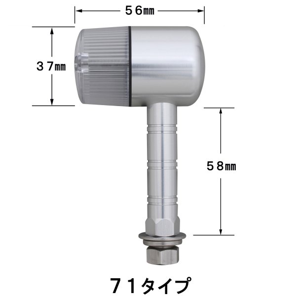 ポッシュ POSH アルミマシンドウインカー71ボディカラー:シルバーレンズカラー:クリアステー長:スーパーロング取付ネジ径:M10ダブル球(バルブ無し)2個入り日本製【付属品】・ステンレスボルトM10X30mmP1.25:2本(組込済)・防水キャップ:2個・ギボシカバー:4個【仕様説明】アルミ削り出しウインカーシリーズ 71タイプです。鋳造品とは異なったアルミ削り出し独自のカスタムパーツ的な雰囲気を持っています。また、ステー部をウィンカー本体へのねじ込み式にする事で、鋳造品にあるようなステー固定ボルト等を廃止し、よりシャープなデザインとなっております。対応電球はG18型、車両のワット数をご確認の上別途お求めください。※クリア/スモークレンズにはオレンジバルブをご利用ください。※オプションによりLED化可能。