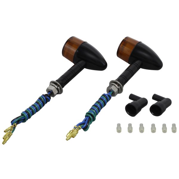 ポッシュ POSH アルミマシンドウインカー 砲弾タイプボディカラー:ブラックレンズカラー:オレンジステー長:スーパーロング取付ネジ径:M10ダブル球(バルブ無し)2個入り日本製【付属品】・ステンレスボルトM10X30mmP1.25:2本(組込済)・防水キャップ:2個・ギボシカバー:4個【仕様説明】アルミ削り出しウインカーシリーズ 71タイプです。鋳造品とは異なったアルミ削り出し独自のカスタムパーツ的な雰囲気を持っています。また、ステー部をウィンカー本体へのねじ込み式にする事で、鋳造品にあるようなステー固定ボルト等を廃止し、よりシャープなデザインとなっております。対応電球はG18型、車両のワット数をご確認の上別途お求めください。※クリア/スモークレンズにはオレンジバルブをご利用ください。※オプションによりLED化可能。