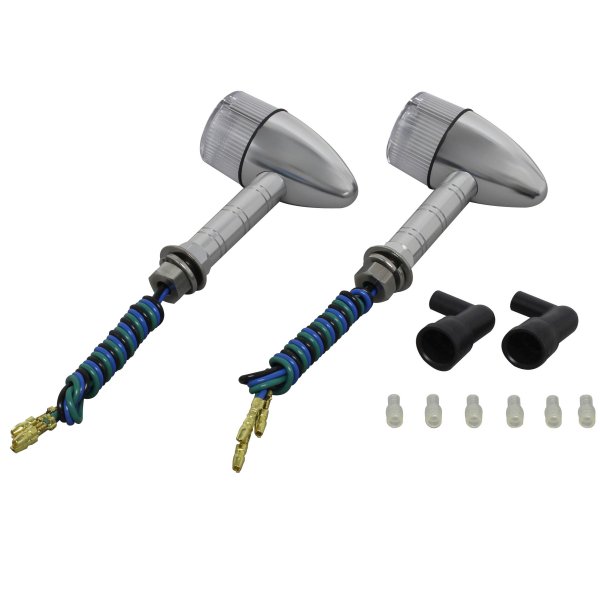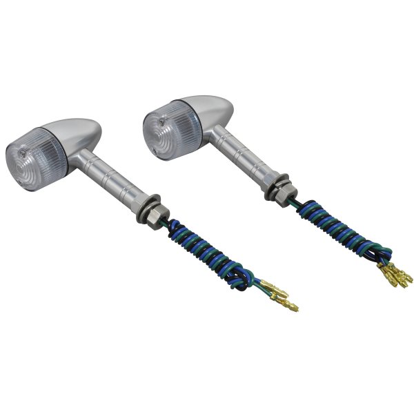 ポッシュ POSH アルミマシンドウインカー 砲弾タイプボディカラー:シルバーレンズカラー:クリアステー長:スーパーロング取付ネジ径:M10ダブル球(バルブ無し)2個入り日本製【付属品】・ステンレスボルトM10X30mmP1.25:2本(組込済)・防水キャップ:2個・ギボシカバー:4個【仕様説明】アルミ削り出しウインカーシリーズ 71タイプです。鋳造品とは異なったアルミ削り出し独自のカスタムパーツ的な雰囲気を持っています。また、ステー部をウィンカー本体へのねじ込み式にする事で、鋳造品にあるようなステー固定ボルト等を廃止し、よりシャープなデザインとなっております。対応電球はG18型、車両のワット数をご確認の上別途お求めください。※クリア/スモークレンズにはオレンジバルブをご利用ください。※オプションによりLED化可能。