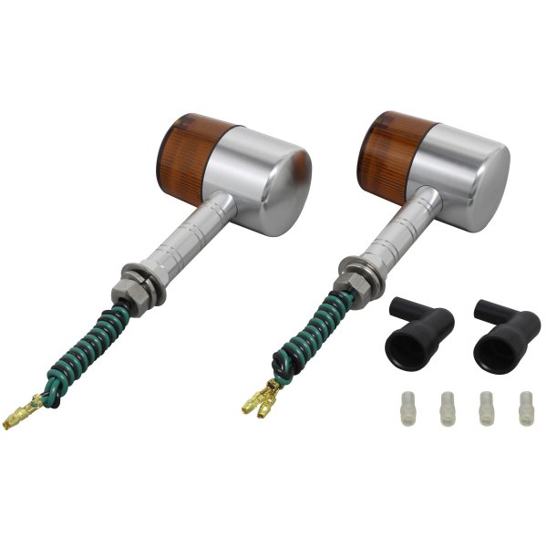 ポッシュ POSH ミドルマシンドウインカー71ボディカラー:シルバーレンズカラー:オレンジステー長:スーパーロング取付ネジ径:M10シングル球(バルブ無し)2個入り日本製【付属品】・ステンレスボルトM10X30mmP1.25:2本(組込済)・防水キャップ:2個・ギボシカバー:4個【仕様説明】小型ウインカーよりもワンサイズ大き目のボディ。大型車に通常のマシンドウィンカーは小さすぎるという方にお勧めです。CNC旋盤によるアルミ削り出し。鋳造品とは異なったアルミ削り出し独自のカスタムパーツ的な雰囲気を持っています。また、ステー部をウィンカー本体へのねじ込み式にする事で、鋳造品にあるようなステー固定ボルト等を廃止し、よりシャープなデザインとなっております。ワンランク上のカスタムを求める方にお勧め致します。※対応電球はG18型。(別売り)