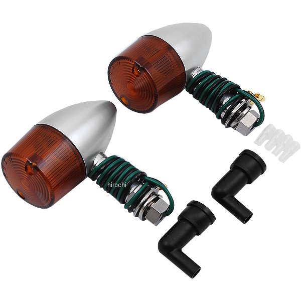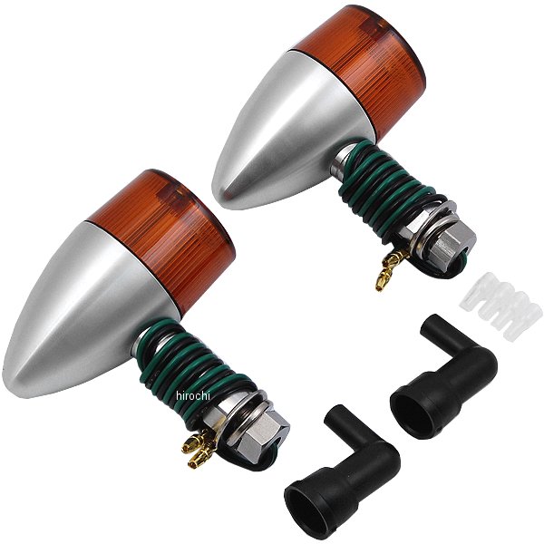ポッシュ POSH ミドルマシンドウインカー 砲弾タイプ汎用シルバーボディ/オレンジレンズシングル球 バルブ無し2個入りロングステータイプダイレクトアースタイプ防水キャップ付きM10X30ステンレスボトル&ワッシャー付き小型ウインカーよりもワンサイズ大き目のボディ。大型車に通常のマシンドウィンカーは小さすぎるという方にお勧めです。CNC旋盤によるアルミ削り出し。鋳造品とは異なったアルミ削り出し独自のカスタムパーツ的な雰囲気を持っています。また、ステー部をウィンカー本体へのねじ込み式にする事で、鋳造品にあるようなステー固定ボルト等を廃止し、よりシャープなデザインとなっております。ワンランク上のカスタムを求める方にお勧め致します。車体に外装、フェンダーレス等に合わせてお選び頂けます。※対応電球はG18型。別売り。