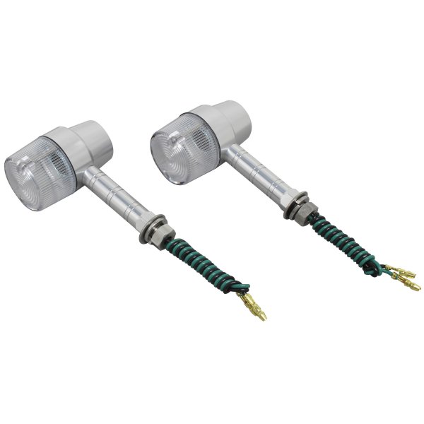 ポッシュ POSH ミドルマシンドウインカースーパーバイクボディカラー:シルバーレンズカラー:クリアステー長:スーパーロング取付ネジ径:M10シングル球(バルブ無し)2個入り日本製【付属品】・ステンレスボルトM10X30mmP1.25:2本(組込済)・防水キャップ:2個・ギボシカバー:4個【仕様説明】小型ウインカーよりもワンサイズ大き目のボディ。大型車に通常のマシンドウィンカーは小さすぎるという方にお勧めです。CNC旋盤によるアルミ削り出し。鋳造品とは異なったアルミ削り出し独自のカスタムパーツ的な雰囲気を持っています。また、ステー部をウィンカー本体へのねじ込み式にする事で、鋳造品にあるようなステー固定ボルト等を廃止し、よりシャープなデザインとなっております。ワンランク上のカスタムを求める方にお勧め致します。※対応電球はG18型。(別売り)