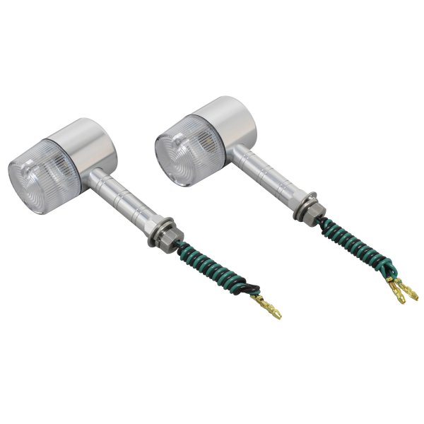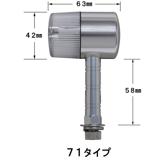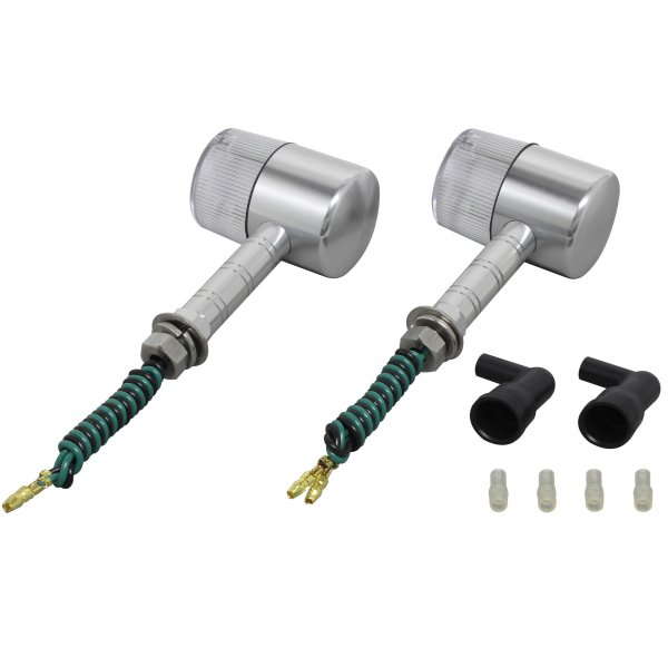 ポッシュ POSH ミドルマシンドウインカー71ボディカラー:シルバーレンズカラー:クリアステー長:スーパーロング取付ネジ径:M10シングル球(バルブ無し)2個入り日本製【付属品】・ステンレスボルトM10X30mmP1.25:2本(組込済)・防水キャップ:2個・ギボシカバー:4個【仕様説明】小型ウインカーよりもワンサイズ大き目のボディ。大型車に通常のマシンドウィンカーは小さすぎるという方にお勧めです。CNC旋盤によるアルミ削り出し。鋳造品とは異なったアルミ削り出し独自のカスタムパーツ的な雰囲気を持っています。また、ステー部をウィンカー本体へのねじ込み式にする事で、鋳造品にあるようなステー固定ボルト等を廃止し、よりシャープなデザインとなっております。ワンランク上のカスタムを求める方にお勧め致します。※対応電球はG18型。(別売り)