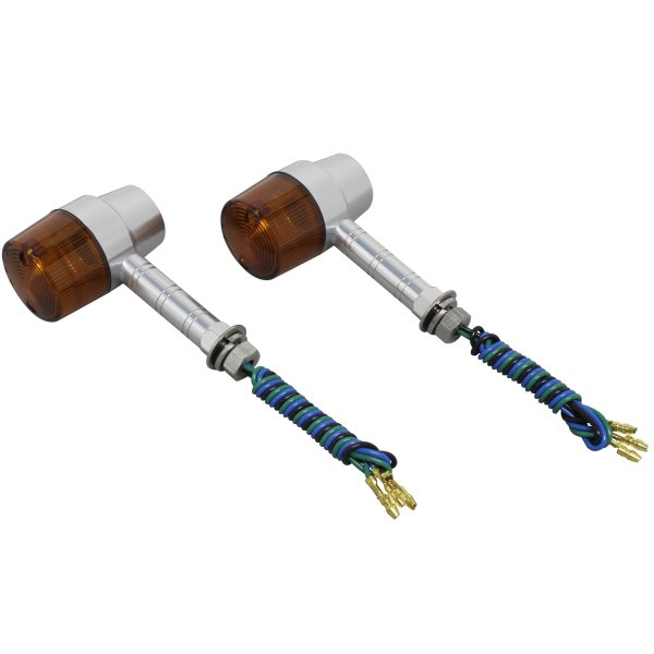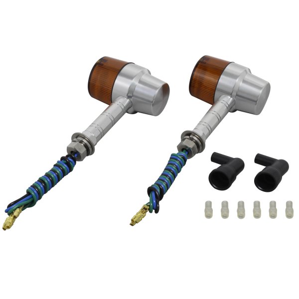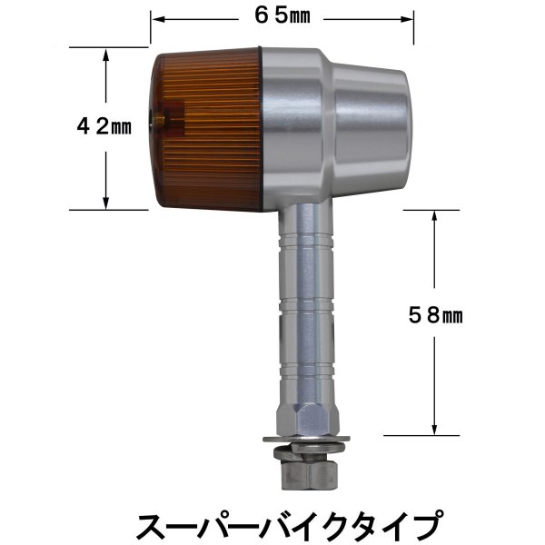 ポッシュ POSH ミドルマシンドウインカースーパーバイクボディカラー:シルバーレンズカラー:オレンジステー長:スーパーロング取付ネジ径:M10ダブル球(バルブ無し)2個入り日本製【付属品】・ステンレスボルトM10X30mmP1.25:2本(組込済)・防水キャップ:2個・ギボシカバー:4個【仕様説明】小型ウインカーよりもワンサイズ大き目のボディ。大型車に通常のマシンドウィンカーは小さすぎるという方にお勧めです。CNC旋盤によるアルミ削り出し。鋳造品とは異なったアルミ削り出し独自のカスタムパーツ的な雰囲気を持っています。また、ステー部をウィンカー本体へのねじ込み式にする事で、鋳造品にあるようなステー固定ボルト等を廃止し、よりシャープなデザインとなっております。ワンランク上のカスタムを求める方にお勧め致します。※対応電球はG18型。(別売り)