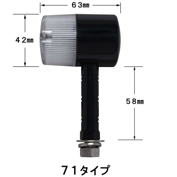 ポッシュ POSH ミドルマシンドウインカー71ボディカラー:ブラックレンズカラー:クリアステー長:スーパーロング取付ネジ径:M10ダブル球(バルブ無し)2個入り日本製【付属品】・ステンレスボルトM10X30mmP1.25:2本(組込済)・防水キャップ:2個・ギボシカバー:4個【仕様説明】小型ウインカーよりもワンサイズ大き目のボディ。大型車に通常のマシンドウィンカーは小さすぎるという方にお勧めです。CNC旋盤によるアルミ削り出し。鋳造品とは異なったアルミ削り出し独自のカスタムパーツ的な雰囲気を持っています。また、ステー部をウィンカー本体へのねじ込み式にする事で、鋳造品にあるようなステー固定ボルト等を廃止し、よりシャープなデザインとなっております。ワンランク上のカスタムを求める方にお勧め致します。※対応電球はG18型。(別売り)
