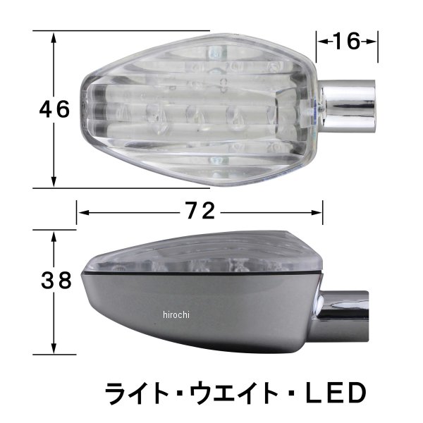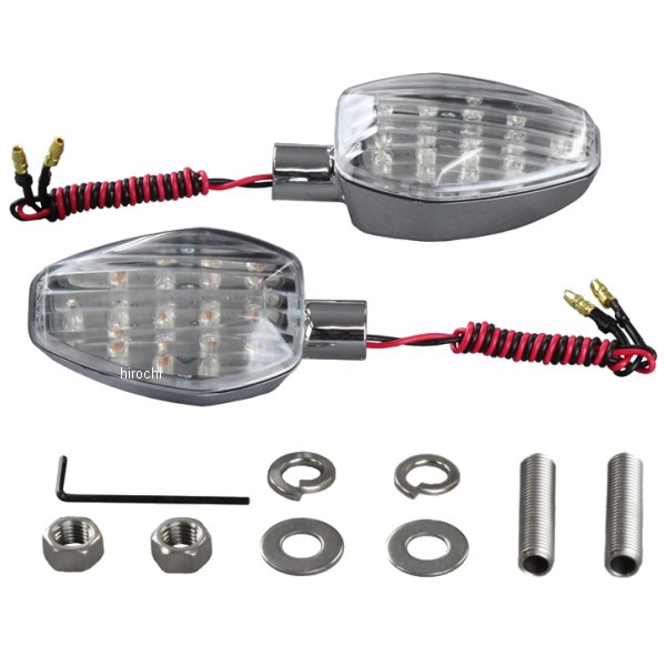 ポッシュ POSH LEDウインカー ライトウエイト汎用カラー:メッキボディ/クリアレンズシングル仕様LED内臓ウインカー付属品:ステンレス製M10×40mmスタッドボルト、ナット、ワッシャー付き2個入り【仕様説明】軽量ポリカーボネートボディ、ステーをウインカーボディーと一体化したスリムなデザインの ”Light Weight LEDウインカー”。※ステー部の長さは別売りの延長ステーとの併用で変更可能です。ウインカー本体、LED基板全てが安心の国内生産。※LED対応「ワイドワットウインカーリレー」(別売り)への交換が必要です。