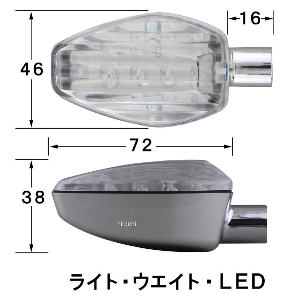 ポッシュ POSH ライトウエイトLEDウインカー汎用カラー:メッキボディ/クリアレンズダブル仕様(ポジション対応)2個入りLED内臓ウインカー付属品:ステンレス製M10×40mmスタッドボルト、ナット、ワッシャー付き【仕様説明】軽量ポリカーボネートボディ、ステーをウインカーボディーと一体化したスリムなデザインの ”Light Weight LEDウインカー”。ウインカー本体、LED基板全てが安心の国内生産。※ステー部の長さは別売りの延長ステーとの併用で変更可能です。※LED対応”ワイドワットウインカーリレー”(別売り)への交換が必要です。
