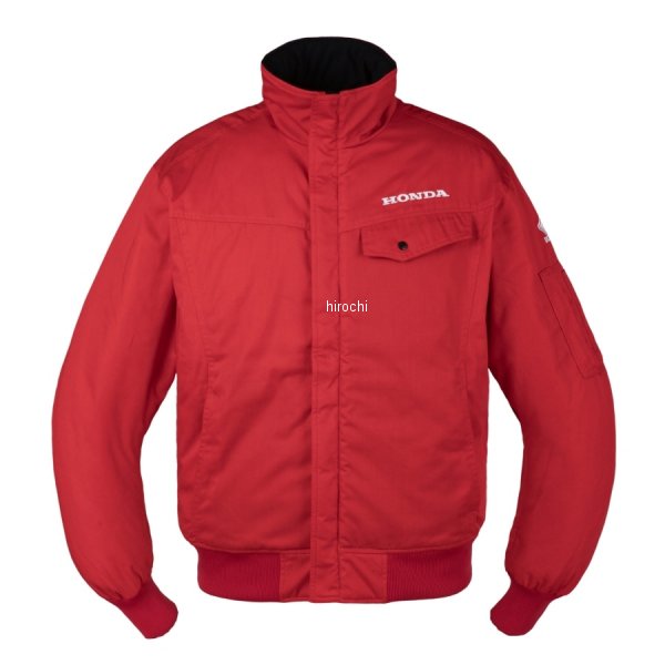 ホンダ純正 ウォームブルゾン レッド LLサイズサイズ:LLカラー:レッド素材:ポリエステル65% 、コットン35% 中綿:ポリエステル100%、 裏地:ナイロン100% ※制電糸入り生地・中綿入りのブルゾン・HONDAとWingマーク刺繍の入ったシンプルなデザイン・袖口・裾はリブ仕様・左内側ポケット付き・イベントやスタッフ用ウエアにもオススメ