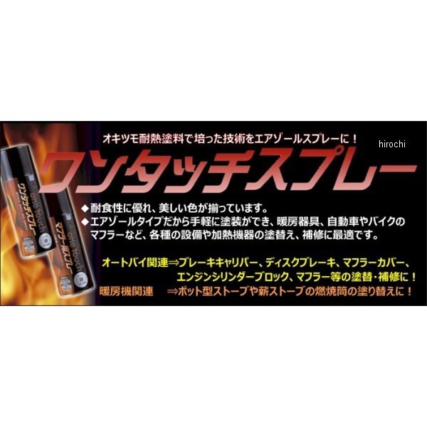 キジマ オキツモ 耐熱ワンタッチスプレー耐熱温度:200℃カラー:赤 (日塗工No.G05-40V)タイプ:ツヤ有内容量:300ml 用途:暖房器具、焼却炉、煙突、加熱部品色見本は画像データのため実際の色とツヤが多少異なることがあります。また素材の種類や表面状態でもツヤの状態が変わる可能性があります。日塗工No.は、日本塗料工業会発行の色見本帳の近似色です。(2013年G版)バイク用耐熱塗料セット[カラーフロン]の 補修用としてご利用いただけます。1回塗り標準面積:1.5-2.0m2乾燥時間:(常温乾燥)24時間以上 又は (焼付乾燥)180度x20-30(min)オキツモ耐熱塗料で培った技術をエアゾールスプレーに。「ワンタッチスプレー」耐食性に優れ、美しい色が揃っています。エアゾールタイプだから手軽に塗装ができ、暖房器具、自動車やバイクのマフラーなど、各種の設備や加熱機器の塗替え、補修に最適です。
