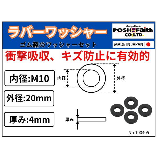 100405 ポッシュ POSH ラバーワッシャーセット 内径10mm 外径20mmx厚さ4mm 4個入り